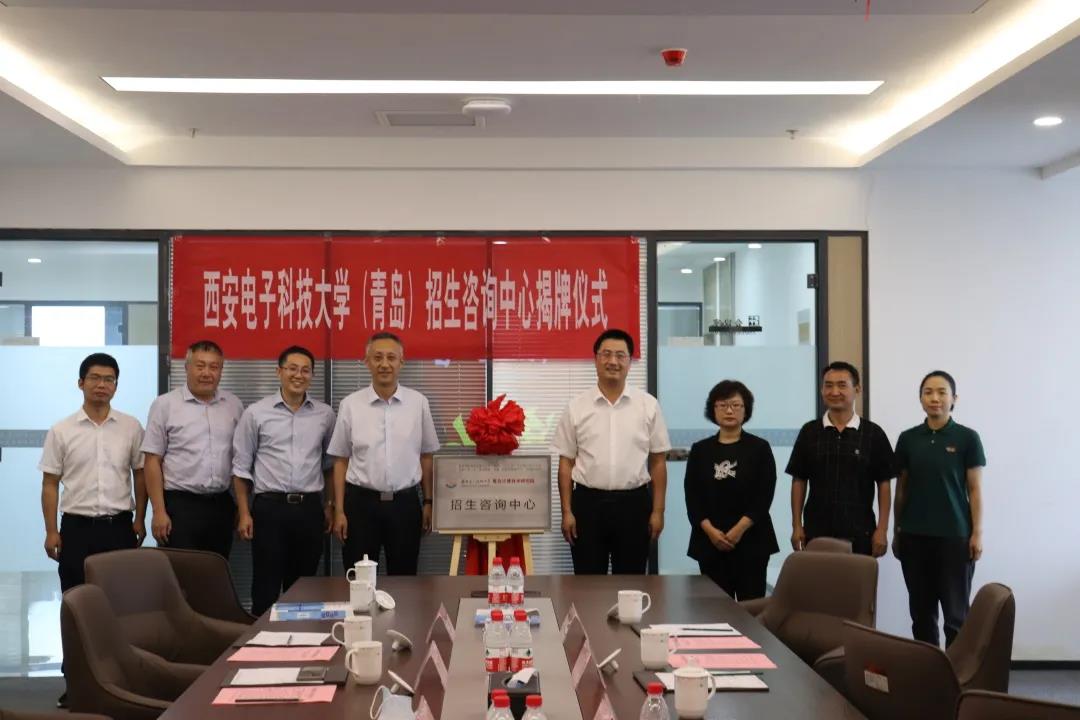 李守林、王泉为“西安电子科技大学(青岛)招生咨询中心”揭牌,孙喜莲、沈玉龙、向麟海、王建东、区科技局、区教体局、城阳街道办事处相关负责人共同见证。