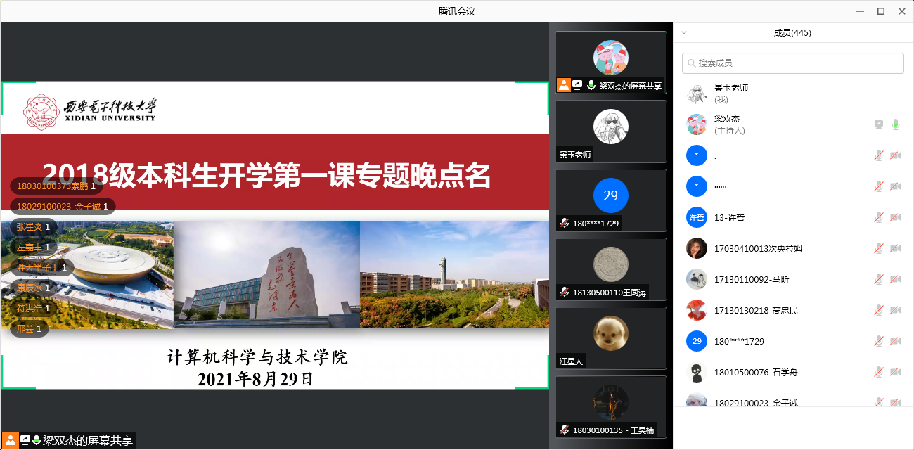 (通讯员 景玉 张力月)2021年8月29日下午,bat365在线客服面向2018级本科生开展了线上“开学第一课”专题晚点名活动。三位本科生辅导员围绕疫情防控、安全教育、升学深造、就业择业等多个方面向同学们介绍了本学期的重点工作任务,引导同学们早知道、早准备、早规划。