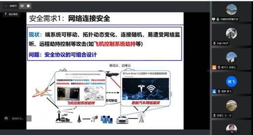 接着,西安电子科技大学马建峰教授以“从无线网络安全看网络空间安全”为题为大家带来精彩报告。他首先科普了网络安全的背景和意义。结合网络安全事件,他谈到“没有网络安全就没有国家安全”,将网络对抗常态化进行,对国计民生非常重要。接着,马教授结合网络呈现信道开发、异构融合模式等特征,针对端系统的安全协议、可验证数据安全存储、通讯、计算和应用等方面,提出了身份认证、密钥协商协议、端到端安全通信等。然后他讲解了带领团队对无线网络中的数据安全的研究工作,主要包含数据存储安全,数据计算安全,无人机和网络摄像头等网络数据安全研究成果。最后,他介绍了经过西安电子科技大学几代网络安全人的奋斗,在网络安全、密码学和教育等发面的发展,同时提出了网络安全前沿进展的思考,并鼓励师生们坚持信念,不忘初心,努力科研,战胜疫情。