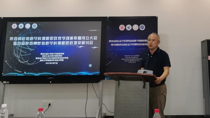 (通讯员 陈龙)为深入贯彻习近平总书记关于教育的重要论述和全国教育大会精神、落实立德树人根本任务,贯彻落实教育部《高等学校课程思政建设指导纲要》等文件要求,由西安交通大学、西北工业大学、西安电子科技大学、西北大学等陕西高校信息学科有关学院(部)主发起,全省设有信息学科高校共同发起成立“陕西高校信息学科课程思政教学创新联盟”,5月7日我院党委书记李青山教授应邀参加联盟成立大会暨首次陕西高校信息学科课程思政建设研讨会,软件工程系主任、系党支部书记褚华老师应邀作了题为“程序设计类课程思政探索与实践”的线上专题报告。西北大学副校长常江出席并致辞,西安交通大学电子与信息学部党委书记梁莉、西北工业大学计算机学院党委书记李春科、西北大学信息科学与技术学院党委书记赵万峰等教师共100多人线下线上参加了会议,会议由西北大学信息科学与技术学院副院长冯筠主持。