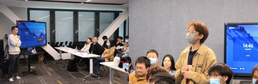 程莉介绍了掌趣校招人才培养体系建设情况,姬景刚从信息技术升级的角度表示,企业更加注重学生的基础能力和可持续学习能力,希望能与学院加强交流合作,共促学生能力成长。培训负责人详细介绍了掌趣全流程培训体系。学院2020届毕业生、现负责客户端开发工作的石同学结合项目经历说:“掌趣新人培训给我的感觉很好。对于师弟师妹们我想说,作为程序员,和其他同事的沟通协作非常重要。”