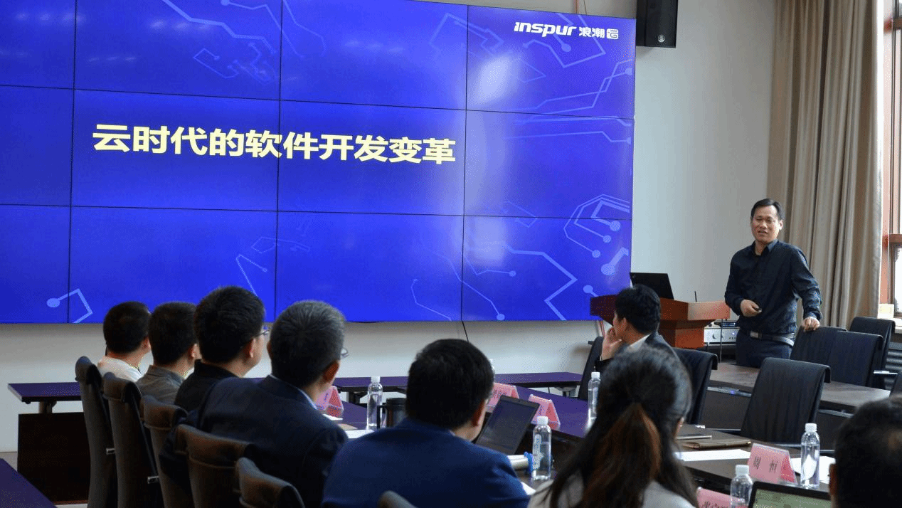 揭牌仪式结束后,浪潮开发者中心总经理王立军和计蒜客首席布道师钦恩强分别为在座的各位老师带来名为“云时代下的软件开发变革”和“聚焦智慧编程,助力产教融合”的精彩报告。学校计算机导论与程序设计语言课程组长万波谈到,“智慧编程联合实验室”的建立将进一步推动信息技术与教育教学深度融合,为智慧课堂的建设提供软件开发服务等云资源,计蒜客设计的在线编程和实践环境平台,趣味盎然的交互方式可以让同学之间在一起轻松学习。在场的其他老师也参与了此次大讨论,周恒和杨斌从技术支持角度讲述了智能教室和编程基础课程的发展方向,三方表示未来将加强协同育人项目的合作,以产业和技术发展的最新需求推动高校人才培养改革,促进校企共同发展。