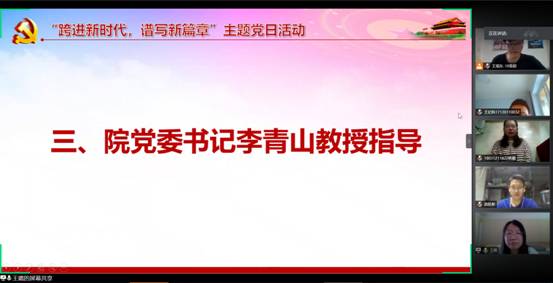(通讯员 赵海洋)为认真学习、深刻领会两会精神,将其作为当前和今后一个时期的重要政治任务,并扎实推进、学出实效,bat365在线客服智能软件与系统新技术研究所本硕博师联合党支部于2020年5月29日组织开展了“跨进新时代,谱写新篇章——学习两会和习近平总书记在陕重要指示精神”主题党日活动。bat365在线客服党委书记李青山教授,作为与支部联系指导的学院党委委员参加了此次活动并进行指导。活动由支部书记王璐老师主持,共计40人参加。