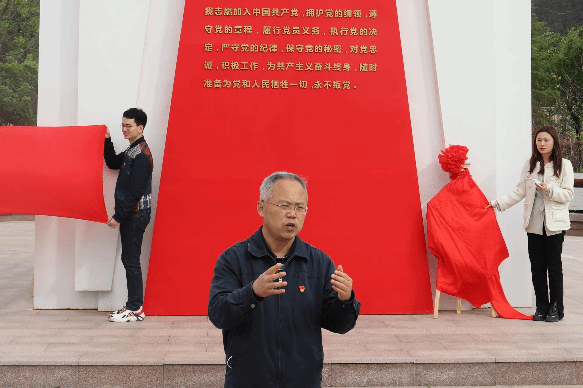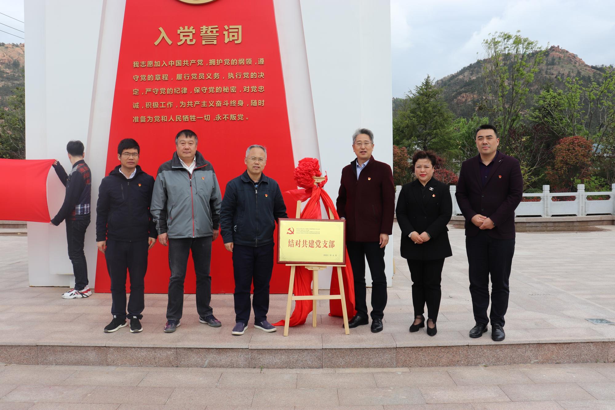 接着,李青山带领全体党员重温了入党誓词,再忆入党初心,坚定理想信念。李青山、李苹苹、刘祖洺、向麟海、王建东共同为“结对共建党支部”揭牌并与大家合影留念。